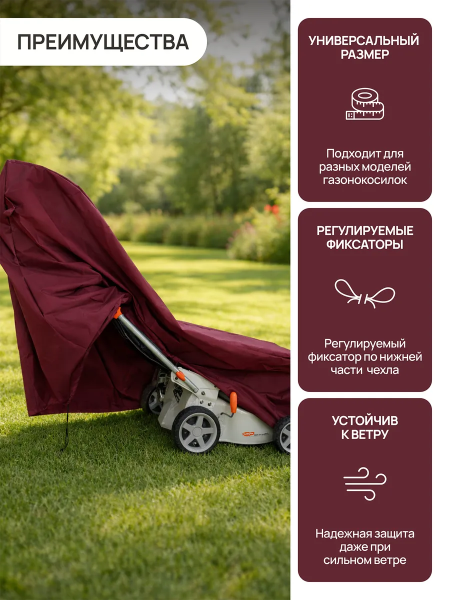 Чехол для газонокосилки — практичный уличный чехол для техники, который обеспечивает надежную защиту, удобное хранение и долговечность вашей садовой техники.