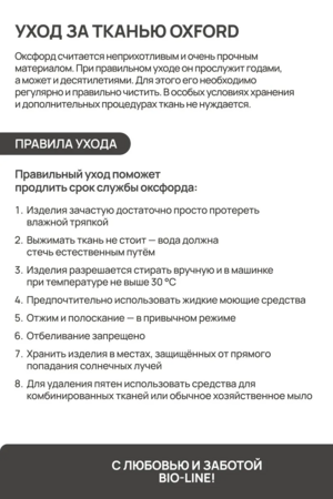 Он изготовлен из прочной ткани Oxford 600D которая не выгорает на солнце и сохраняет форму при длительном использовании на улице. Ткань Oxford водостойкая, она покрыта полиуретаном (PU), что делает её ветро- и водостойкой. Тент для садовой техники не пропускает воду даже при сильном дожде, защищает от выгорания на солнце и сохраняет свои свойства при перепадах температур. Уличный чехол для техники эффективно предотвращает коррозию, загрязнения и преждевременный износ оборудования.