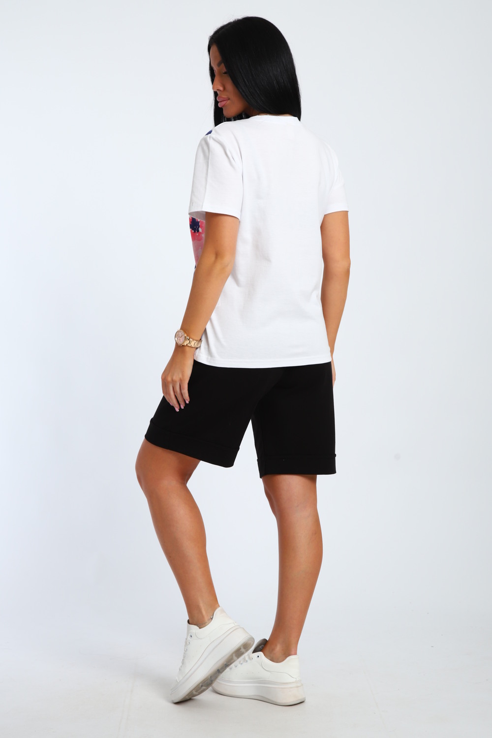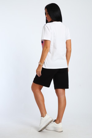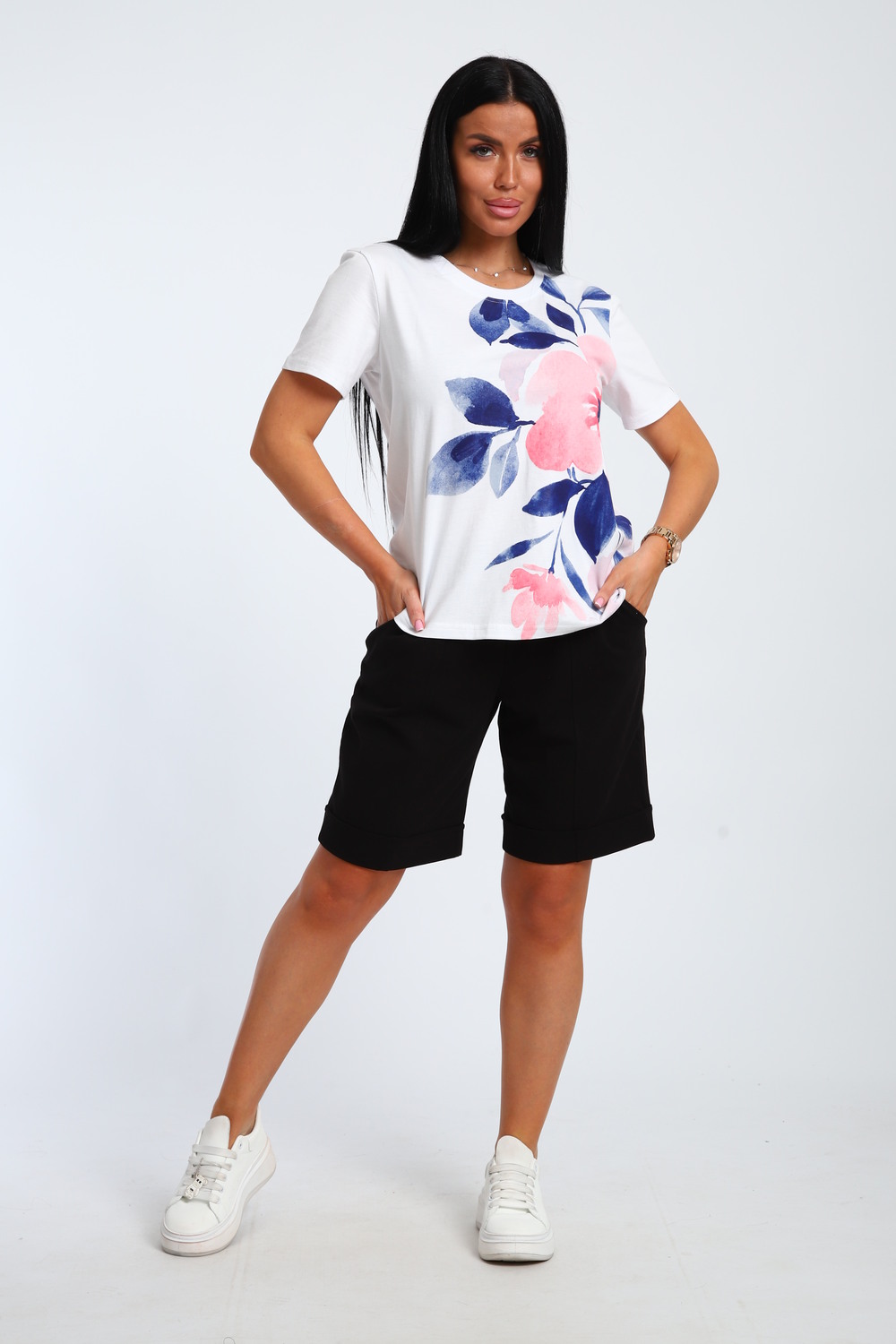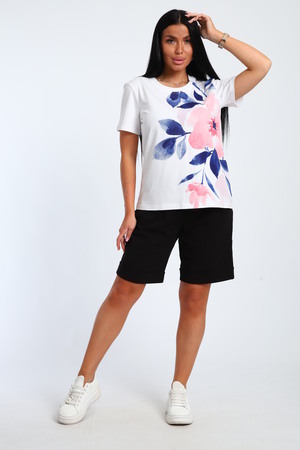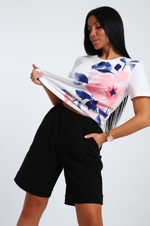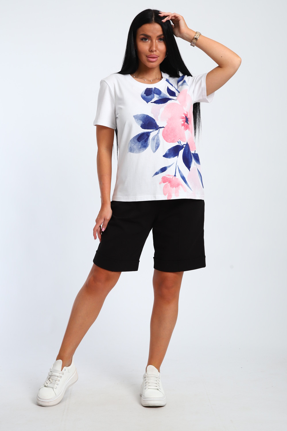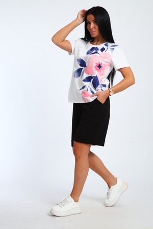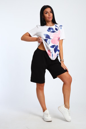 Летний женский костюм с шортами для дома и отдыха-удобный комплект,включающий футболку и шорты.Женский комплект отлично сидит на любой фигуре,подчеркивает её достоинства.Отличная посадка шорт с эластичным поясом гарантирует свободу движений.Лёгкая базовая футболка из 100% хлопка,не стесняет действий и позволяет коже дышать в самые жаркие дни.Размерный ряд включает как маленькие ,так и большие размеры.Он обязательно понравится вашим близким и родным,ведь быть модной можно и нужно всегда.