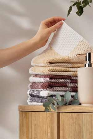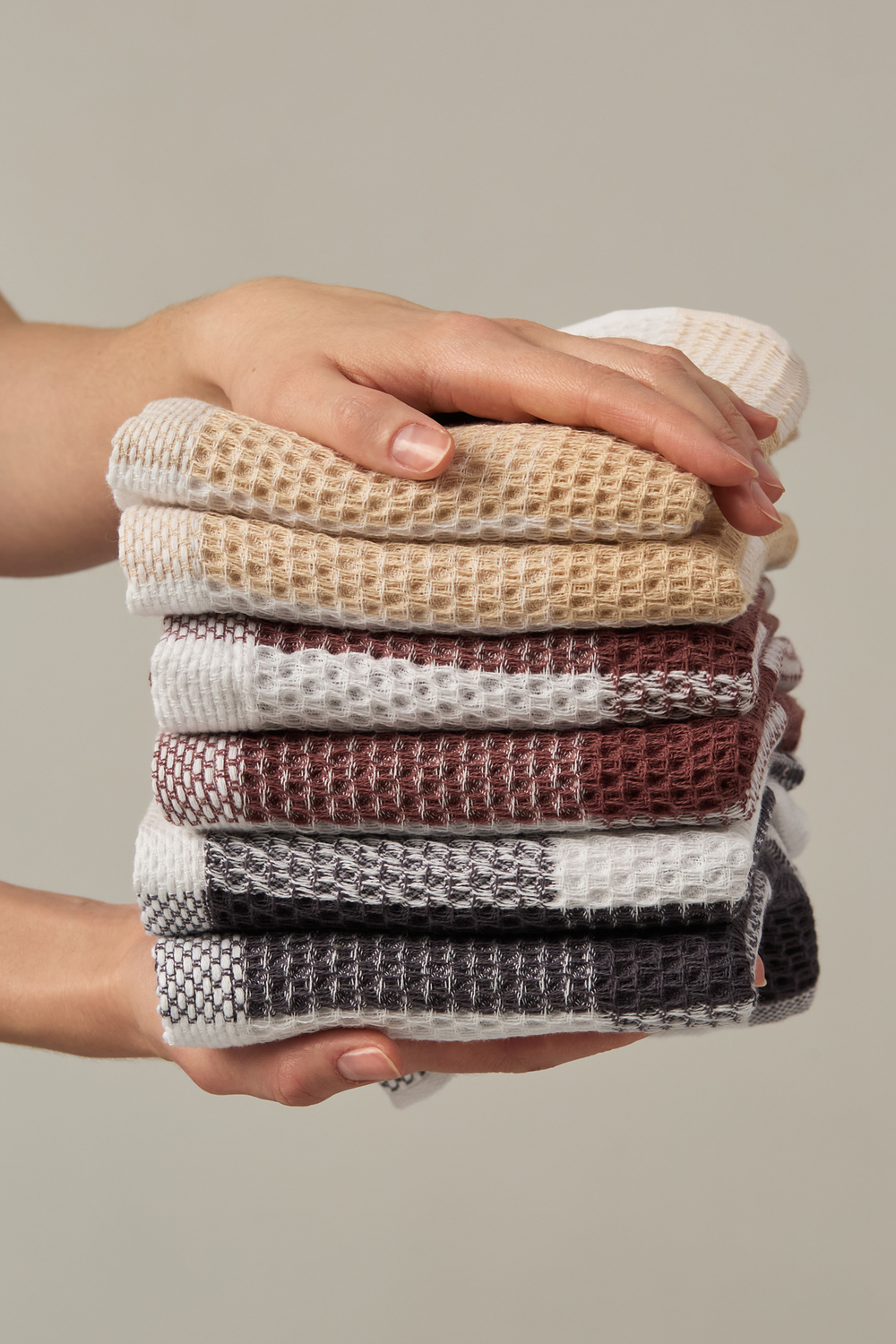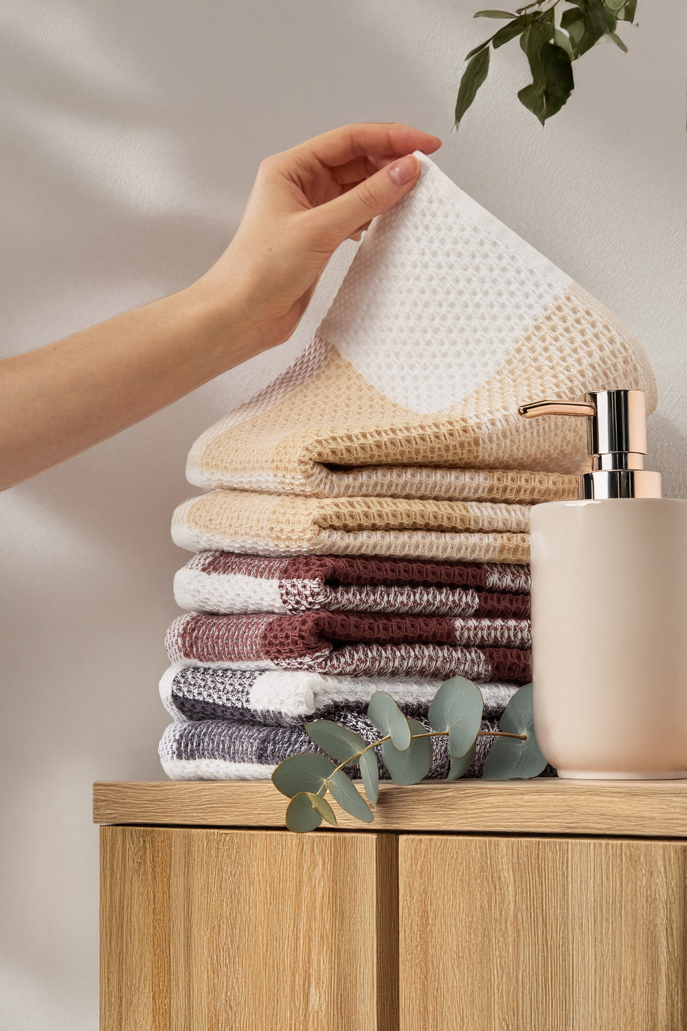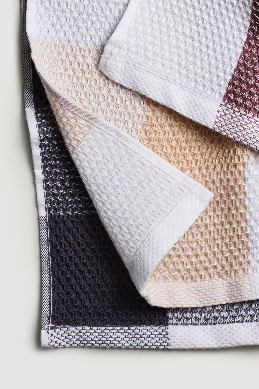 Комплект кухонных вафельных полотенец в клетку 6 штук – практичный набор текстиля, который сделает вашу кухню еще функциональнее. В наборе полотенца в 3-х разных расцветках по 2 шт. на каждую. Полотенца для рук имеют универсальный размер 40х60 см, изготовлены из натуральной вафельной ткани, в составе 100% хлопок. Каждое полотенце имеет удобную петельку для хранения. Полотенца кухонное из хлопкового материала с плотностью 330 г/м2 мягкие на ощупь, отлично впитывают влагу и быстро сохнут. Идеально подойдут для дома, дачи и квартиры, а также как подарочный набор полотенец. Вафельная салфетка кухонная - хороший выбор для ухода за столовыми приборами, бокалами, тарелками и прочей посудой. Легкие и хлопковые, небольшие полотенчики с петельками станут незаменимым домашним аксессуаром и добавят уюта в интерьер столовой. Набор выпускается в прозрачной упаковке с красивым вкладышем.