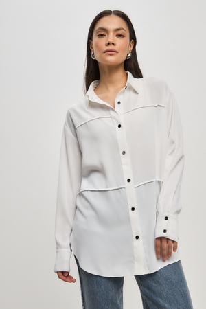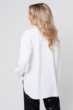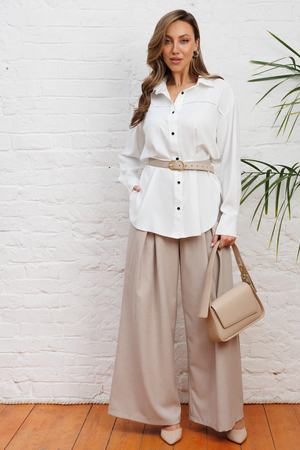 Представляем актуальную рубашку в стиле расслабленного оверсайз, которая идеально впишется в ваш гардероб предлагая современный взгляд на деловой стиль с акцентом на максимальный комфорт и сдержанную элегантность от российского производителя бренда женской одежды! Модель с отложным воротником со стойкой деликатно обрамляет лицо и визуально удлиняет шею, а длинные рукава на манжете акцентируют внимание на запястьях, подчеркивая женственность и хрупкость рук, что создает тот самый желанный образ собранной и ухоженной леди. Продуманный крой с двумя видами защипов по переду и спинке создает благородную свободу облегания, позволяя ткани красиво струиться и мягко скрывать область живота, даря вам ощущение комфорта и уверенности в своей фигуре даже после насыщенного дня. Контрастные пуговицы и планка по низу с фигурным разрезом добавляют образу современную динамичность и статусность. Эта рубашка идеально впишется в ваш ритм жизни, легко трансформируясь из строгого офисного наряда для важных встреч в расслабленный кэжуал-лук для прогулки или похода в гости, помогая вам всегда выглядеть эффектно и чувствовать себя свободной, сочетаясь с брюками, юбками или джинсами. Модель доступна в больших размерах плюс сайз - 50, 52 и 54, будет шикарно смотреться в любом возрасте, подойдет для полных девушек. Удачных Вам покупок! С уважением, TOPLES.
