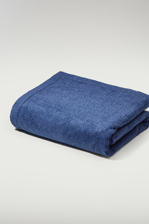 Изделие выполнено из качественной хлопковой пряжи с оптимальной плотностью 380 г/м2. С лицевой стороны покрывало имеет фактуру велюр меланж (особая технология стрижки махрового полотна). Благодаря этому поверхность не подвержена затяжкам и зацепкам, что подойдет владельцам домашних животных. С изнаночной стороны у покрывала приятные махровые петли, которые создают приятный массажный эффект.