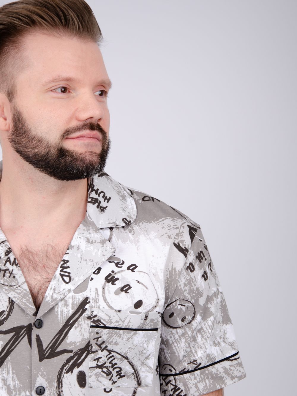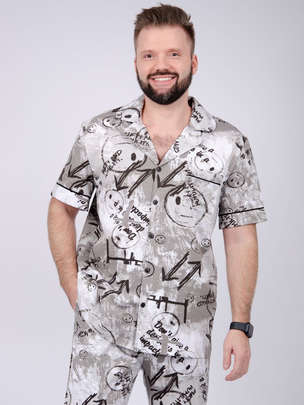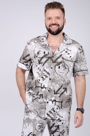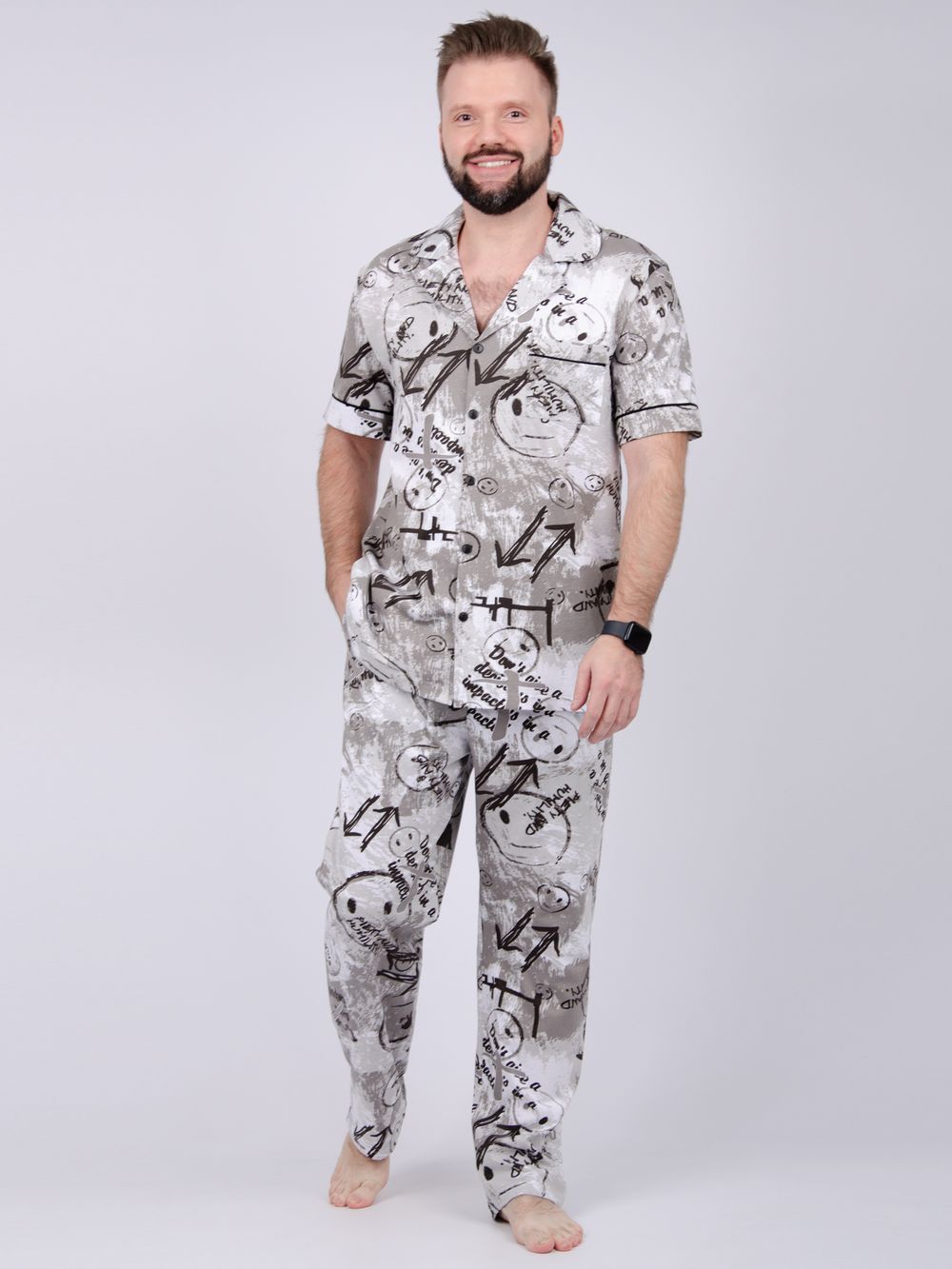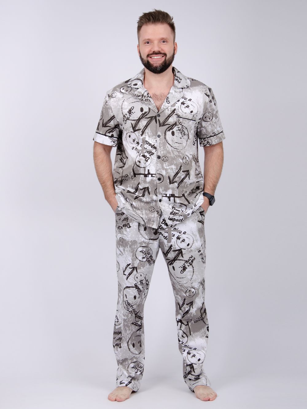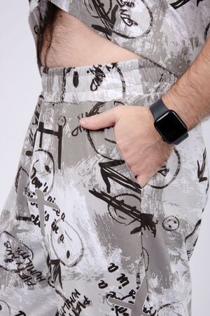 Мужская пижама со штанами - это идеальный выбор для домашнего отдыха и комфортного сна. Этот домашний костюм выполнен из мягкого трикотажа, который обеспечивает максимальный комфорт. Футболка с коротким рукавом и брюки с карманами создают удобство и практичность. Изготовленная из хлопка, эта пижама обеспечивает нежность и приятное ощущение на коже. Сочетание футболки и штанов позволяет создать стильный и уютный образ для отдыха. Благодаря своему дизайну и функциональности, она подойдет для повседневного использования.