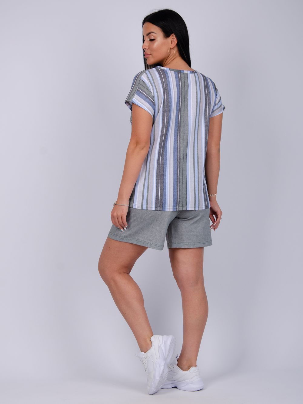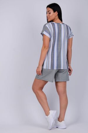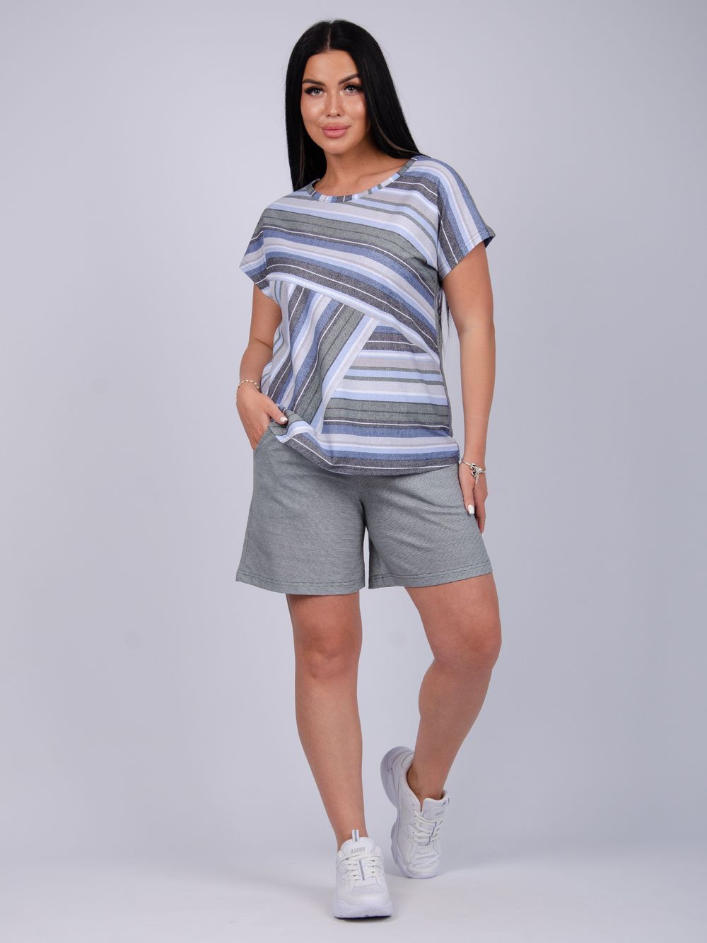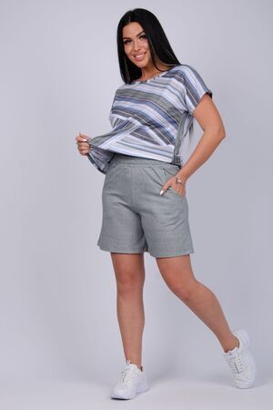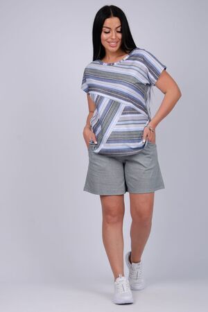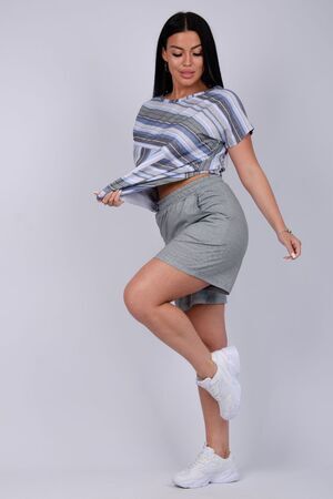 Стильный женский костюм - отличное дополнение гардероба на летний сезон. Этот комфортный комплект идеально подходит для отдыха дома или прогулок по свежему воздуху. Изготовленный из легких и дышащих тканей, он обеспечит вам максимальное удобство в жаркую погоду. Двойка состоит из футболки и шорт, которые созданы для того, чтобы дарить ощущение свободы и легкости, позволяя вам наслаждаться каждой минутой. Модель предлагается в больших размерах, что позволяет каждой женщине найти подходящий вариант. В нем вы будете чувствовать себя уверенно, независимо от того, проводите ли вы время за чтением книги в любимом кресле или готовите ужин на кухне. Такой комплект станет отличным выбором как для отдыха, так и для активного времяпрепровождения дома. Он станет вашим верным спутником на протяжении всего теплого времени года, придавая вашему стилю легкость и непринужденность.