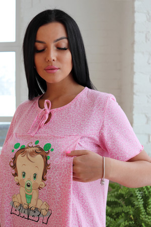 Ночная сорочка для кормящих мам. Ткань кулирка, по фону набивка-звездочки. Полочка с принтом.