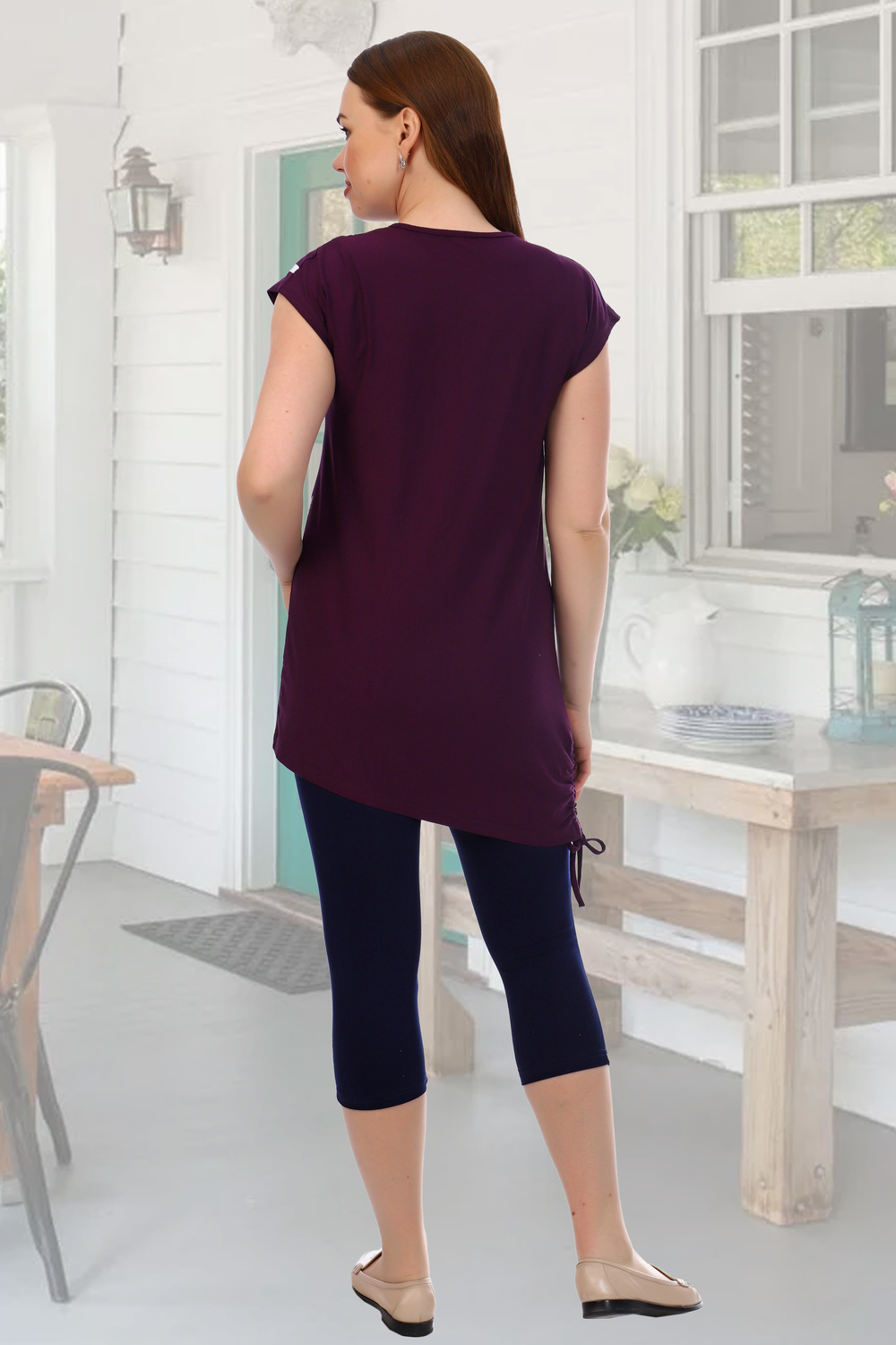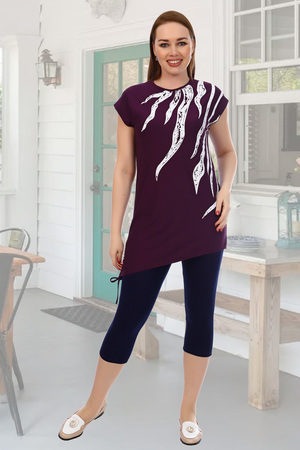 Комплект женский для дома и отдыха. Туника со спущенным плечом асимметричного силуэта. На детали переда - печать. Леггинсы на резинке по талии.