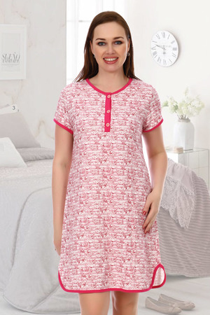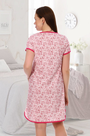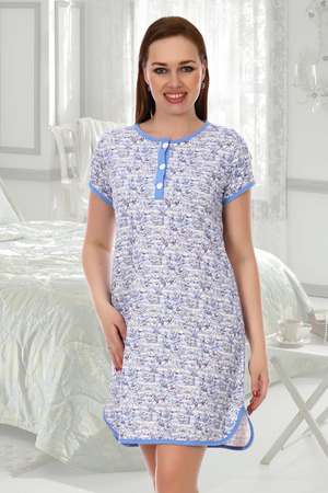 Сорочка женская из тонкого трикотажного полотна, втачная планка с пуговицами, низ сорочки обработан под бейку.