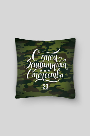 Декоративный чехол-наволочка на подушку День Защитника (40х40см) из полиоксфорда с потайной молнией. Фотопечать - художественная иллюстрация с камуфляжным фоном и стильной надписью.