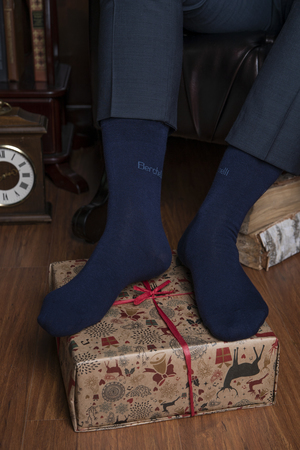 Подарочный набор мужских носков. Высокие однотонные носки с вывязанной фирменной надписью. В комплекте 3 пары в красивой картонной упаковке. Состав пряжи: 80% хлопок, 17% п/а, 3% эластан