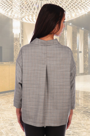 Стильная рубашка с классическим воротником, на кнопках, в стиле оверсайз из современной клетки, рукава 3/4 с манжетом