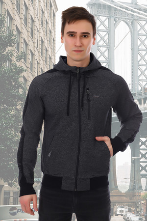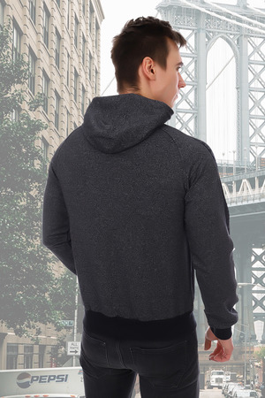 Олимпийка мужская на молнии. Кофта с капюшоном рукава на манжете, пояс на резинке