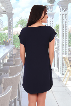Туника молодежная. По бокам имеются карманы, рукав короткий. На полочке принт из страз.