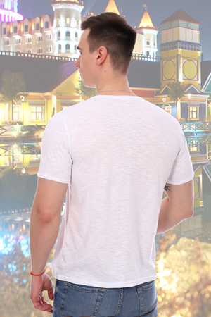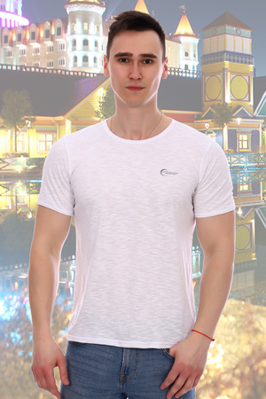 Футболка мужская свободного силуэта. Маленькая печать в виде логотипа придает изделию изысканность. Ткань приятная, легкая. Горловина и края рукавов обработаны двойным кантом в цвет ткани.