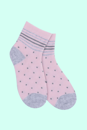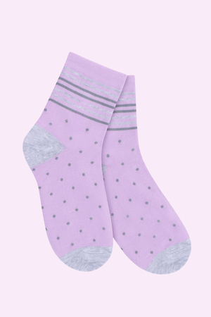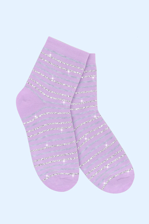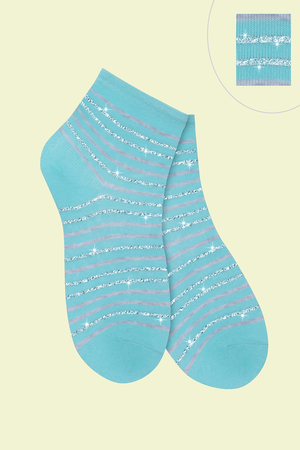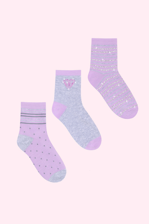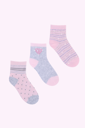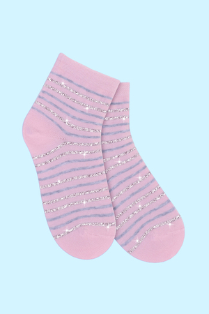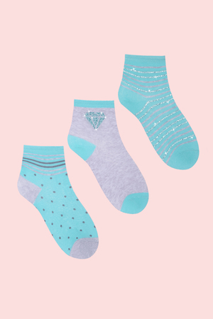 Детские носочки нежных расцветок с переливающимися нитями люрекса. В упаковке 3 пары - по 1 паре каждой расцветки. Расцветки зависят от размеров: