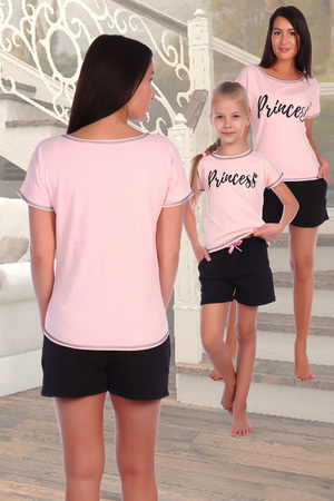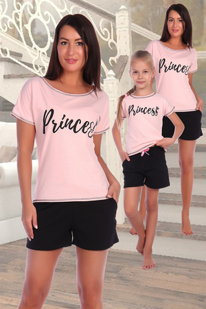 Костюм молодежный с шортами с бантиком, свободной футболкой с принтом.
