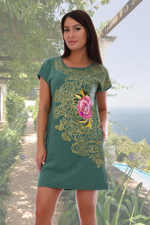 Туника женская со спущенным рукавом и красивым принтом на полочке