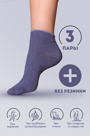 Однотонные женские носки без резинки. Обеспечивают комфорт при носке - не перетягивают сосуды и не затрудняют отток крови, что очень важно при поражении вен и нервных окончаний. В упаковке 6 пар — по 2 пары каждой расцветки