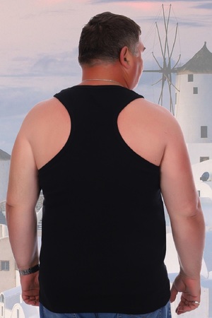 Мужская борцовка из рибаны. Без рукавов, окантовка в тон, маленький принт в виде надписи на груди