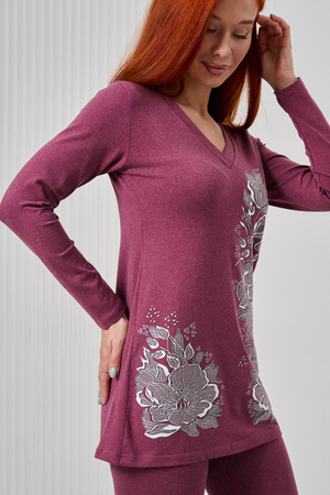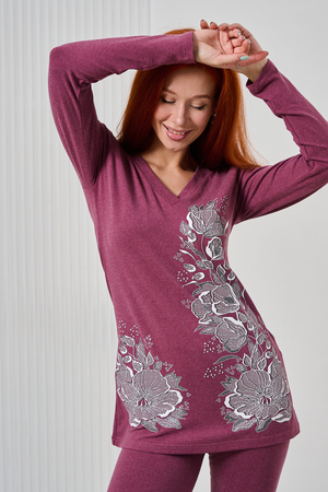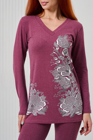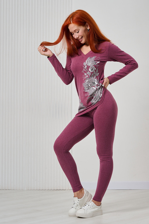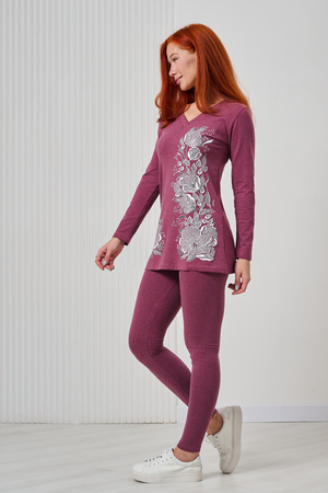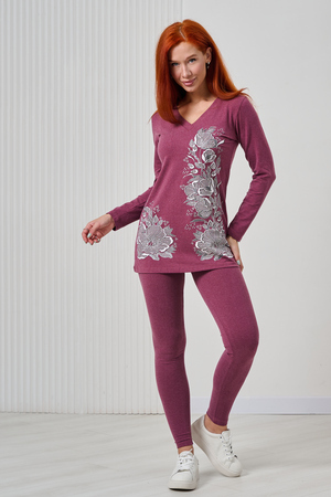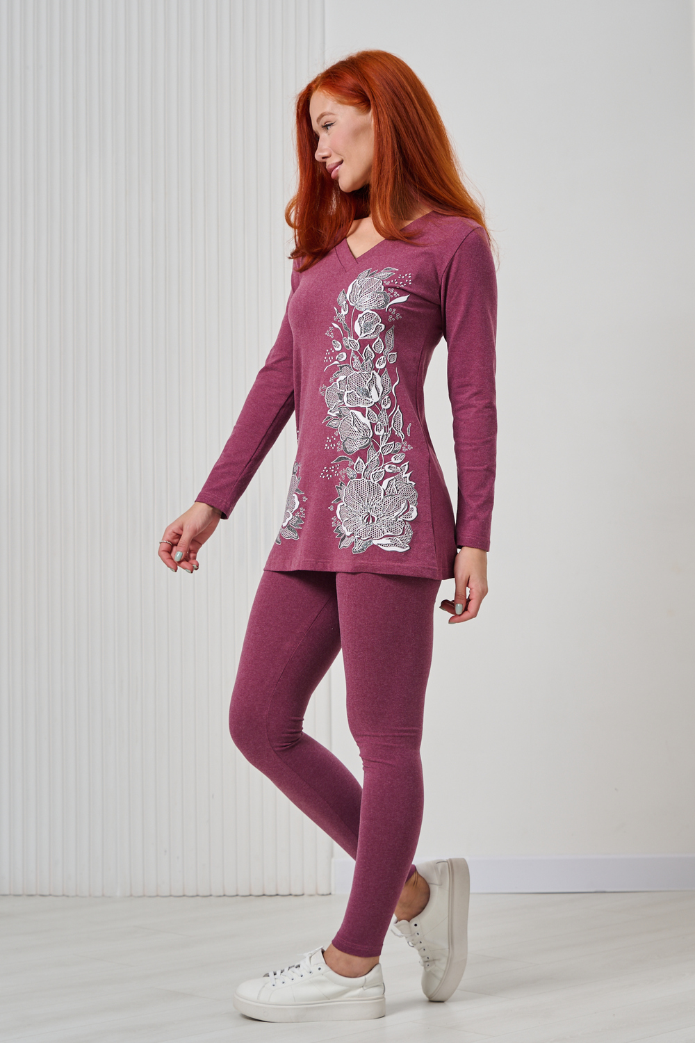 Евгения Георгиевна01.11.2022 в 09:20Очень приятная, нежная и мягкая ткань. Идёт в размер. На рисунке не видно, что печать на кофточке белая с серебреными блёстками. Очень красивая. Идеальна с лосинами, так как туника удлинённая и со штанами смотрится не очень. Хотя, кто как любит. Это чисто моё мнение