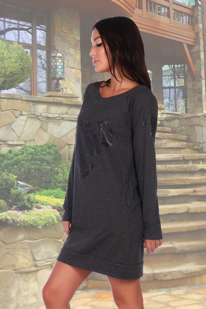 Туника молодежная из кулирки, карманы, снизу на манжете, принт на рукавах и полочке