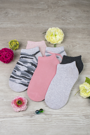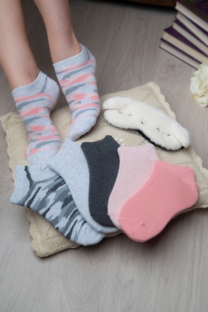 Набор женских укороченных носков. В упаковке 6 пар - по 1 паре каждой расцветки (4 однотонных, 2 "камуфляж"). В продаже имеются аналогичные подростковые носки Микс