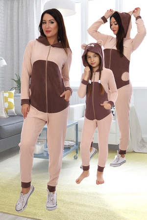 Комбинезон женский домашний из махры с вышивкой "Мишка", с карманами в боковых швах.