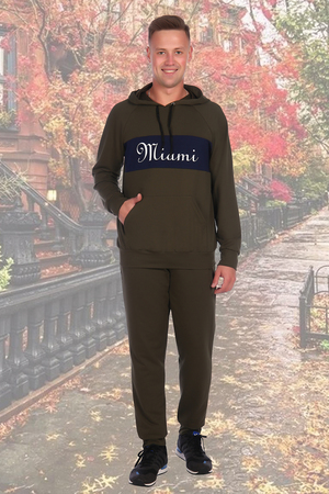Мужской костюм толстовка и брюки. Толстовка с капюшоном и печатью, брюки с карманами и манжетами