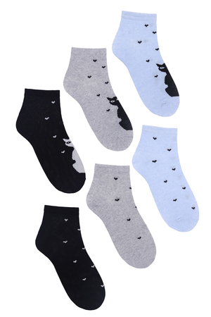Набор женских носков с вывязанными кошками. В упаковке 6 пар - по 1 паре каждой расцветки
