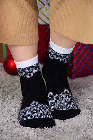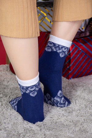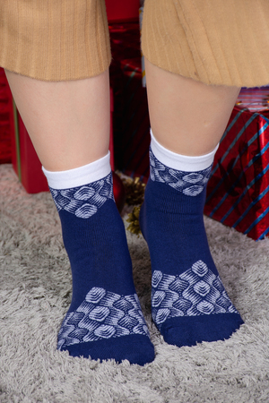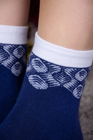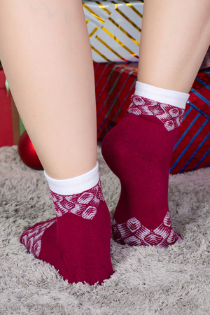 Набор женских плюшевых носков с вывязанными узорами в виде перьев. В упаковке 6 пар - по 2 пары каждой расцветки. В продаже имеются аналогичные подростковые носки Жар-птица