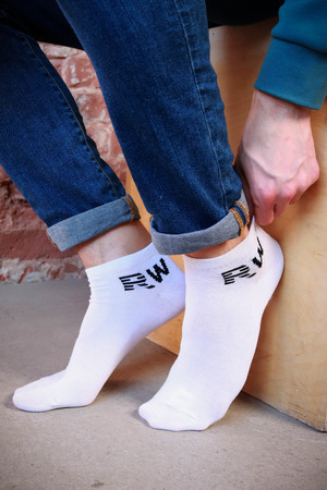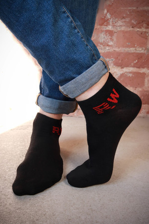 Набор мужских носков с вывязанными надписями. Длина средняя. В упаковке 6 пар - по 2 пары каждой расцветки