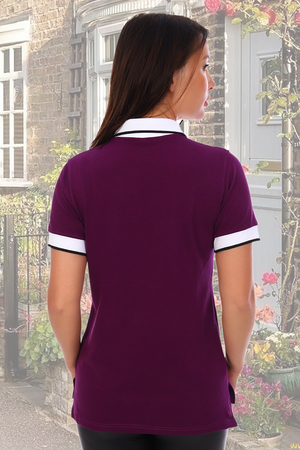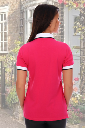 Футболка поло женская для спорта или на каждый день. Ткань лакост-пике с 5% добавления лайкры, благодаря чему изделие не дает усадку и не теряет форму после стирки. Отделка воротника и манжетов в контрастно-белых тонах, на полочке печать, по бокам разрезы