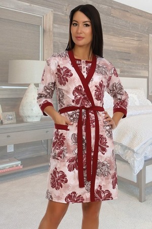 Пеньюар в комплектации халат+сорочка. Короткий запашной халат с поясом. Сорочка выше колена, отрезная полочка под линией груди, верхняя часть с застёжкой на планке.