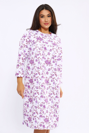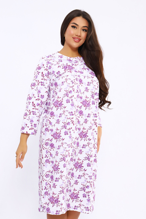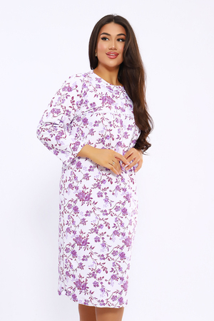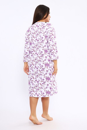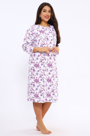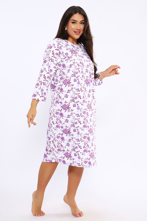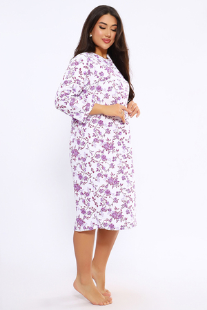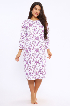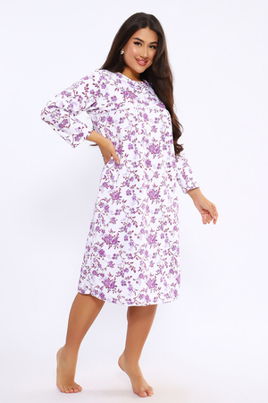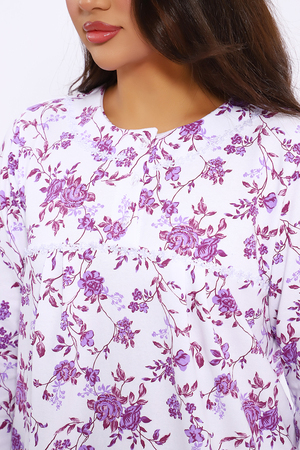Ночная сорочка из футера с длинным рукавом. На кокетке планка с тремя пуговицами. Воротник декорирован кружевом. По линии отреза лифа небольшая сборка.