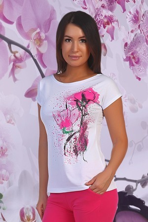 Футболка полуприлегающего силуэта, средней длины, с округлой горловиной. Рукав цельнокроеный, короткий.