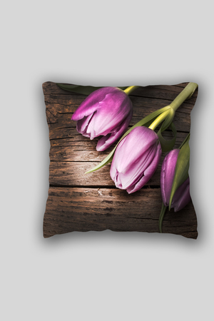 Декоративный чехол-наволочка "Флаер" (40x40 см) из полиоксфорда с потайной молнией. Фотопечать — художественная иллюстрация с изображением тюльпанов.