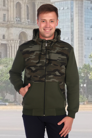 Толстовка мужская с капюшоном, на молнии. Манжет по низу изделия и на рукавах