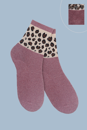 Набор плюшевых детских носков в стильной леопардовой расцветке. В упаковке 3 пары - по 1 паре каждой расцветки. В продаже имеются аналогичные женские носки Оцелот