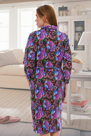 Халат фланелевый с пуговицами. Воротник "апаш", пояс вокруг талии. Обращаем ваше внимание расцветка ассорти - цвет халат может прийти отличный от представленных фото.