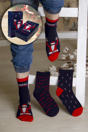 Новогодний подарочный набор мужских носков. В комплекте 3 пары в красивой картонной упаковке