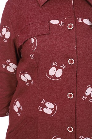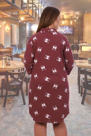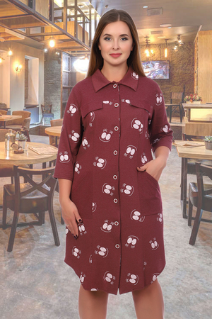 Удобный халат-рубашка на пуговицах, рукав 3/4, два кармана по бокам изделия, воротник стойка.
