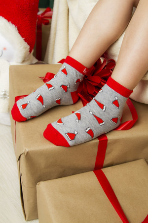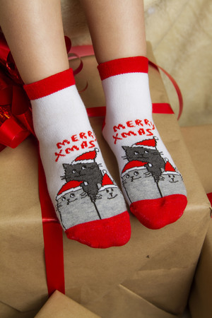 Новогодний подарочный набор детских носков. В комплекте 3 пары в красивой картонной упаковке