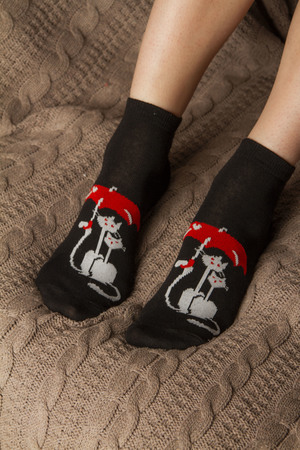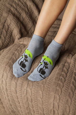 Набор женских носков с вывязанными кошками с зонтиками. В упаковке 6 пар - по 1 паре каждой расцветки