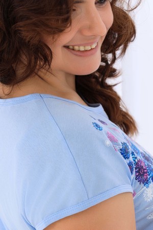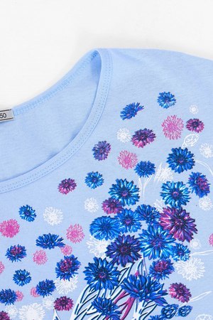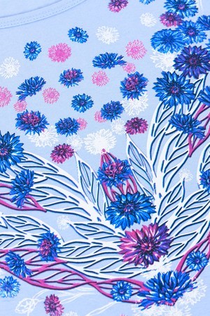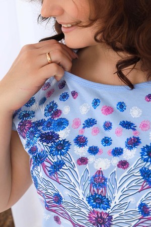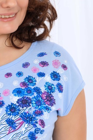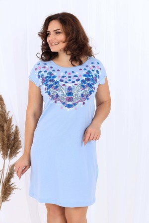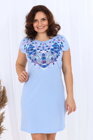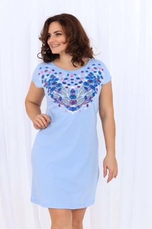 Нежная сорочка с красивым васильковым принтом. Очень удобный крой. Спущенный рукав, горловина-лодочка.