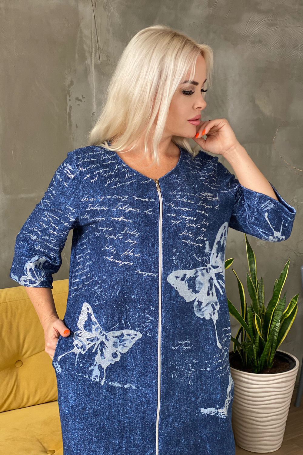 Халат женский полуприлегающего силуэта. Рукав втачной 3/4. Вырез y-образный. В боковых швах внутренние карманы. На полочках и рукавах принт