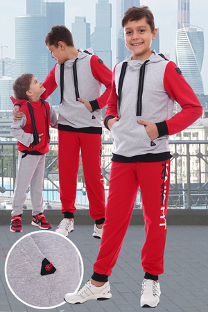 Толстовка комбинированная детская с двойным капюшоном и отделочной тесьмой (репсовая лента со светоотражающей полосой), выполнена из трикотажного полотна футера 2-х нитки. В данной модели втачной рукав, на левом предплечье нашит фирменый лейбл, манжет из трикотажного полотна (кашкорсе). На полочке присутствует карман-кенгуру с лейблами. Низ изделия на манжете из кашкорсе. Модель подходит как для прогулки, так и для отдыха.